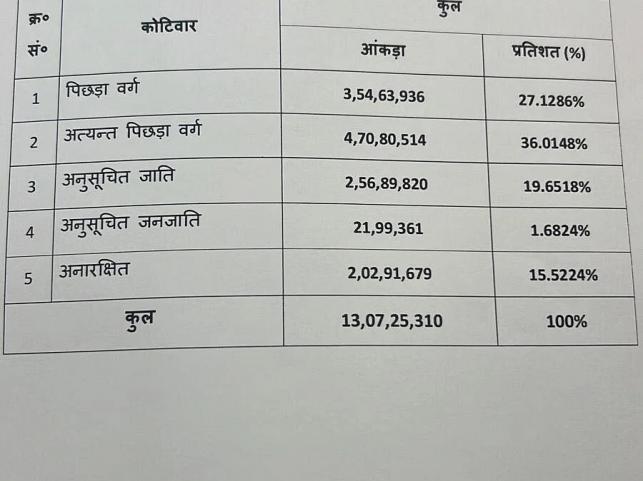 Bihar government releases caste census report; OBC is 27%, general 15.52%