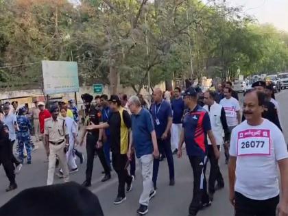 Patna (Bihar) [India], April 12 : Bihar Governor Lt Gen Syed Ata Hasnain (Retd) and state Director General of Police (DGP) Vinay Kumar on Sunday participated in the 'Raftaar-e-Sukoon' marathon organised for senior citizens.