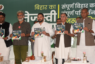 Patna, Oct 28 The Grand Alliance on Tuesday released its common manifesto for the upcoming Bihar Assembly elections, titled “Tejashwi’s Pledge”, at a press conference held at the Maurya Hotel in Patna.