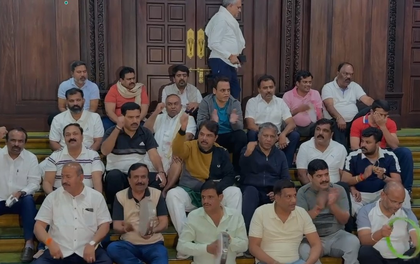 The legislators held posters inside the Assembly demanding the resignation of Excise Minister R.B. Thimmapur, alleging a Rs 6,000-crore scam in the Excise Department. Later, they gathered to sing devotional songs and then slept on the floor of the House. Photos and videos of BJP and JD(S) leaders sleeping on the floor went viral on social media.