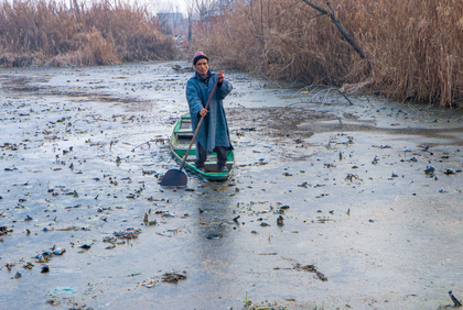 A feeble winter sun rose in the clear sky as water taps and the road puddles froze completely, while the Dal Lake in Srinagar city froze in parts.