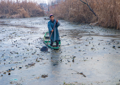 A feeble winter sun rose in the clear sky as water taps and the road puddles froze completely, while the Dal Lake in Srinagar city froze in parts.