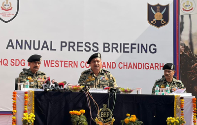 Khandare told the media that the BSF was raised on December 1, 1965, as the ‘First Line of Defence’ with 25 battalions and now has 193 battalions and safeguards a total of 6,386 km of international border along Pakistan and Bangladesh. The Western Command is manning 2,289.66 km along the India-Pakistan border. This force has grown into the largest border guarding force in the world with a strength of more than 2.76 lakh brave men and women comprising of Air Wing, Water Wing and Artillery Regiments.