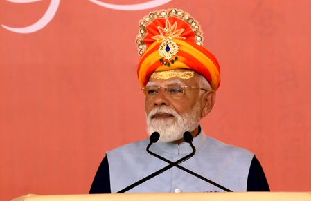 PM Modi was greeted with the slogans of "Modi-Modi" as he arrived at the stage to address the enthusiastic crowd.