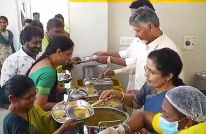 Beneficiaries at the Anna Canteen extended their birthday wishes to Chandrababu Naidu. The couple served breakfast while warmly greeting everyone present.