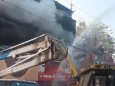 The incident occurred under the jurisdiction of Kotwali Police Station. Following the fire, 12 fire tenders were sent at the scene which are trying to control the blaze.