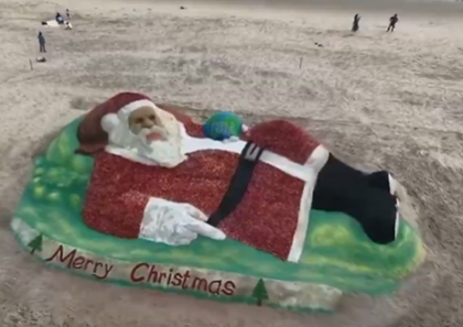 #WATCH Puri, Odisha: Sand artist Sudarsan Pattnaik has created a new world record by making a Santa Claus sculpture using apples and sand. The World Records Book of India has officially declared this record.