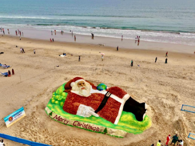 Measuring an impressive 60 feet in length, 22 feet in height and 45 feet in width, the installation showcases Santa Claus holding a globe, symbolising global peace and harmony. The artwork highlights Pattnaik’s distinctive style of conveying social messages through sand art, while celebrating the joy and spirit of Christmas.