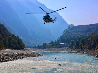 According to senior forest officials, IAF Mi-17V5 helicopters conducted aerial firefighting operations at elevations of nearly 9,500 feet, carrying out multiple sorties and dropping over 12,000 litres of water on the fire-affected areas.