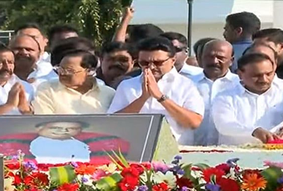 Accompanied by Cabinet Ministers, senior party leaders, MLAs and a large number of cadres, Stalin offered floral tributes at the Anna Memorial, recalling the enduring legacy of Annadurai, widely revered as the architect of Dravidian politics and social reform in Tamil Nadu.