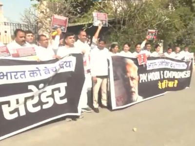 Jaipur (Rajasthan) [India], February 26 Congress MLAs on Thursday staged a protest outside the Rajasthan Legislative Assembly against Prime Minister Narendra Modi over the India-US interim trade agreement.