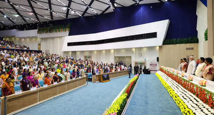 New Delhi, April 14 Senior Congress leader and former Lok Sabha Speaker, Meira Kumar, was among prominent women leaders and activists present in the front row at the Nari Shakti Vandan Sammelan, expressing her support for greater representation of women in legislative bodies.