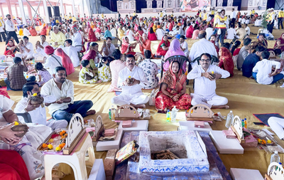 The three-day religious event is steeped in rich Vedic tradition and ritual precision. The ceremony began on Tuesday with the placement of the idols before the sacred fire, or yagna. Thousands of devotees gathered to offer oblations amid the chanting of Vedic mantras, seeking blessings and divine energy.