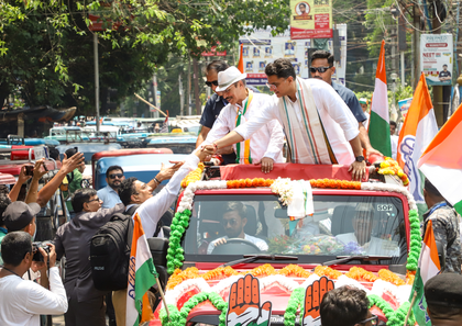 The Congress leader was seen taking a ride in an open jeep along with the party's Baharampur candidate Adhir Chowdhury during a road show.