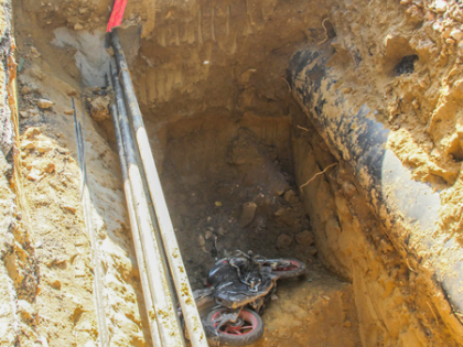 On reaching the site, police found that a man, along with his motorcycle bearing registration number DL9SCJ9478 (Apache 160), had fallen into a pit dug in the middle of the road. The pit was approximately 20 feet long, 13 feet wide and around 14–15 feet deep. Preliminary enquiry revealed that the excavation was carried out as part of work being executed by the DJB.