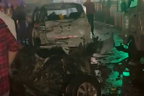 Delhi Blast News: A powerful blast near the Red Fort shook the area on Monday, November 10, 2025. The explosion occurred in a car parked outside gate number one of Red Fort metro station. The vehicle caught fire, and three other cars nearby were completely destroyed. Preliminary reports say one person has died and two to three others have been injured.