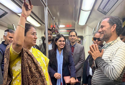 During her Metro ride from Delhi Gate to Lajpat Nagar on the Magenta Line, commuters greeted her with folded hands, young kids took blessings by touching her feet, youngsters took selfies with her, and the Chief Minister herself walked up to the elderly travellers to wish them.