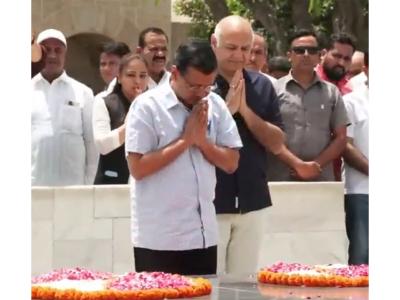 New Delhi [India], April 28 : Aam Aadmi Party convenor Arvind Kejriwal on Tuesday visited Rajghat in the national capital and paid tribute to Mahatma Gandhi at his memorial, amid his announcement of a boycott in the Delhi Excise Policy case proceedings.
