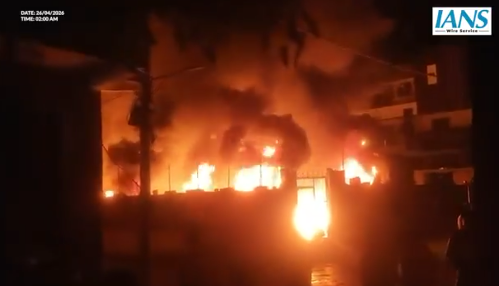 A massive fire broke out late Saturday night in an empty plot storing scrap material in the Pana Paposia area of Narela in Delhi. While the blaze caused significant damage to property and nearby belongings, no casualties have been reported so far.