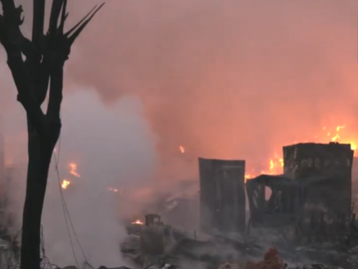 A child was injured in a massive fire that broke out in a slum area near Rithala Metro Station in New Delhi on Friday night, November 7. According to fire officer SK Dua, the fire was declared a Medium category fire due to its intensity, and a total of 29 fire tenders were rushed to the spot.