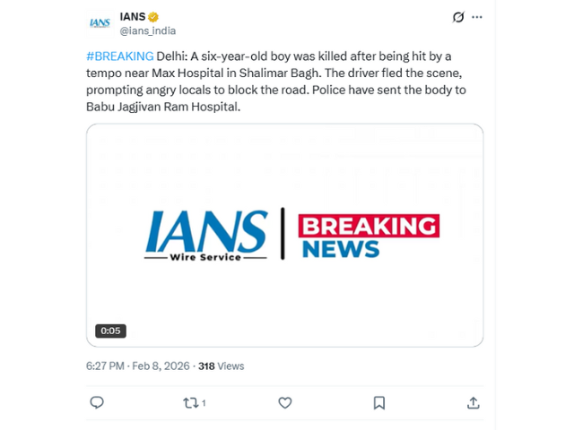 A six-year-old boy was killed after being hit by a tempo near Max Hospital in Delhi’s Shalimar Bagh area, triggering outrage among local residents, reported IANS. According to the police, the incident occurred when the speeding tempo struck the child, leaving him critically injured. The driver allegedly fled the spot immediately after the accident, prompting anger among locals who gathered at the site and blocked the road, demanding strict action. Police teams rushed to the area to control the situation and restore traffic. The child’s body was sent to Babu Jagjivan Ram Hospital for post-mortem examination, and efforts are underway to trace the absconding driver.