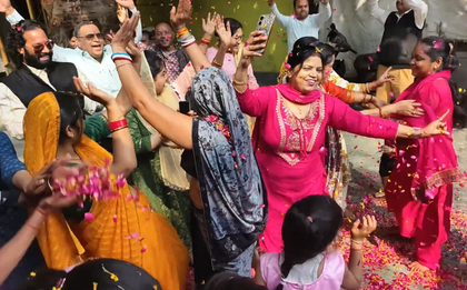 Devotional flower Holi at Samiamai Temple in Prayagraj