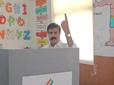 Chennai (Tamil Nadu) [India], April 23 : Desiya Murpokku Dravida Kazhagam (DMDK) treasurer and Rajya Sabha MP Sudish on Thursday cast his vote at a polling station in Valasaravakkam in the ongoing Tamil Nadu assembly polls.
