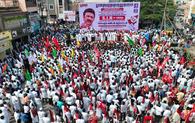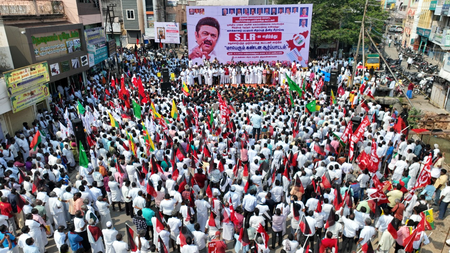 Across districts, cadres of the DMK and its allies — including the Congress, the Viduthalai Chiruthaigal Katchi (VCK), the Marumalarchi Dravida Munnetra Kazhagam (MDMK), the Communist Party of India (CPI), and the Communist Party of India-Marxist (CPI-M) — took to the streets carrying placards, chanting slogans, and urging the public to "protect democracy by opposing the SIR".