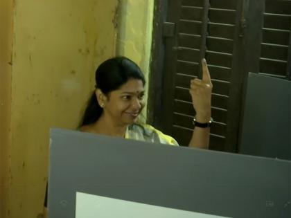 Chennai (Tamil Nadu) [India], April 23 : Dravida Munnetra Kazhagam MP Kanimozhi Karunanidhi on Thursday exercised her franchise at a polling station in St. Ebba's Higher Secondary School in Chennai amid the ongoing polling for Tamil Nadu assembly elections.