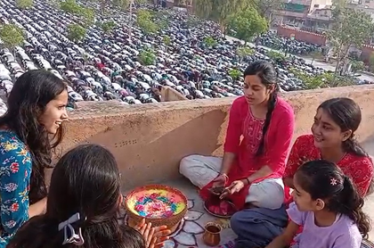 Setting a precedent for communal harmony, young girls from the Hindu community sang traditional songs on a terrace as they went about their rituals for the 'Gangaur' festival, while men from the Muslim community offered 'namaz' nearby.