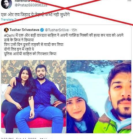 Fact Check: Accused Sahil in Delhi Nikki Yadav murder given a false communal spin