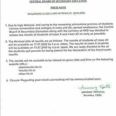 A fake message is being circulated with regard to the declaration of Class 12 and Class 10 Board Results 2020. The Board has not yet announced the result dates: Central Board of Secondary Education (CBSE) https://t.co/z0WGQcIaBWpic.twitter.com/ecIsHH3jch