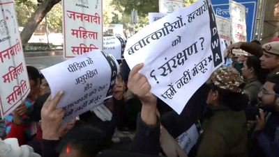Protesters gathered near the court premises, holding placards and chanting slogans such as “Peedit rahe asurakshit aur balatkari kare aish? Humein nahi manzoor,” in support of the survivor and demanding strict action against the convicted former MLA. The protesters said the decision had "shaken public faith and sent a wrong message regarding crimes against women".