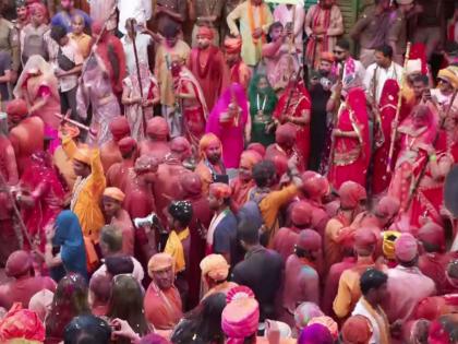 Mathura (Uttar Pradesh) [India], February 25 : The vibrant and playful Lathmar Holi has commenced in the twin towns of Barsana and Mathura in Uttar Pradesh on Wednesday, marking the beginning of the week-long Holi celebrations that draw devotees and tourists from across the country and across the world.