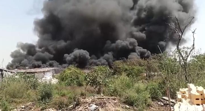 Ghaziabad, April 16 A massive fire broke out in a slum cluster and adjoining scrap warehouse in the Kanawani area under Indirapuram police station limits of Uttar Pradesh's Ghaziabad on Thursday, triggering panic among residents and prompting a swift response from the district administration.
