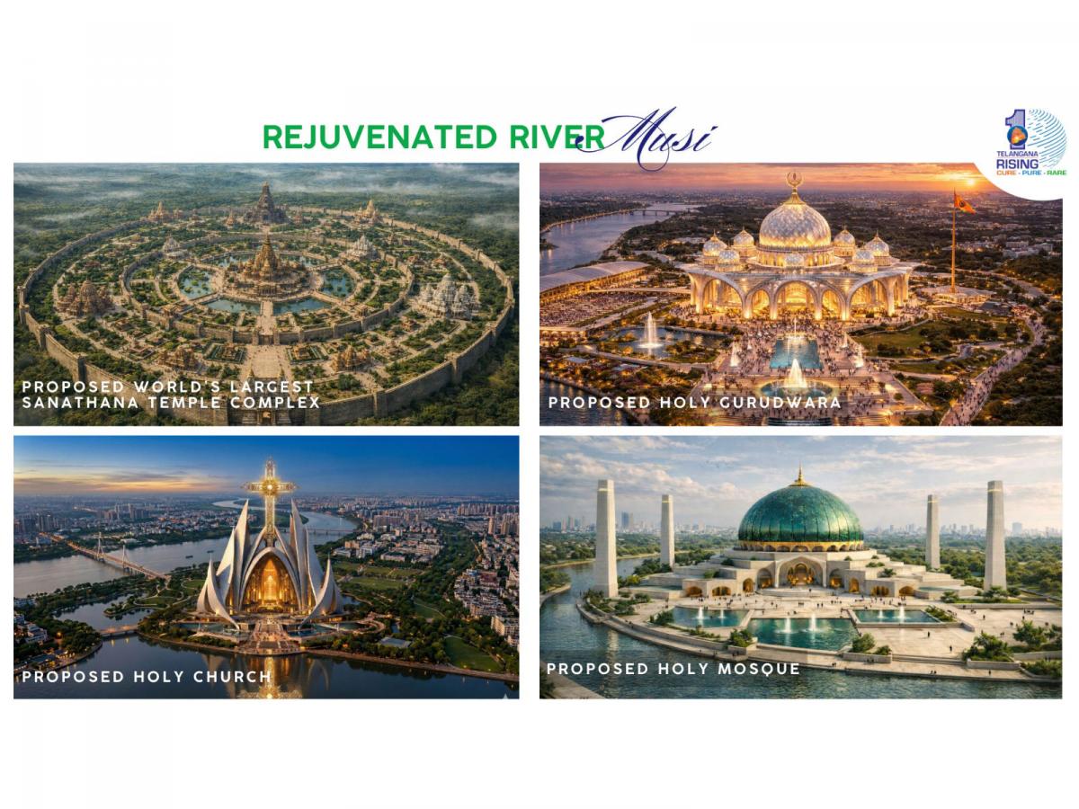 According to an official statement, at the core of this visionary project lies an inspiring idea: the creation of a sacred riverfront that welcomes and represents all major religions. Once rejuvenation is complete, the Musi catchment area will host a harmonious ensemble of spiritual landmarksa temple, a mosque, a gurudwara, and a churchsymbolising coexistence, respect, and shared heritage.
