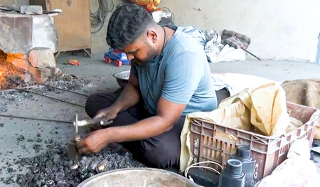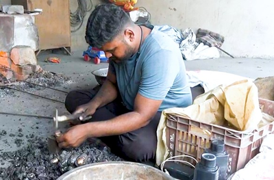 About the craft, copper bell artisan Abhishek Lohar said: "This craft is made in three parts—body, cap, and handle. First, it is shaped from an iron sheet."