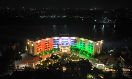 As part of the preparations for the state-level observance, government and heritage buildings across Surat have been illuminated.