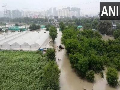 Noida (Uttar Pradesh) [India], July 14 : As the water level of the Yamuna river in Delhi breached the danger mark following incessant rainfall, massive flooding was witnessed in the adjoining areas including Uttar Pradesh's Noida on Friday.