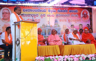 Sri Sri Samba Sadashiva Swamiji of Kirikodli Math and Sri Sri Jayadeva Swamiji of Chilume Math in Arakalagudu were present and blessed the occasion. A large number of villagers attended the event. The Union Minister also offered prayers at the Sri Veeranjaneya Swamy Temple.