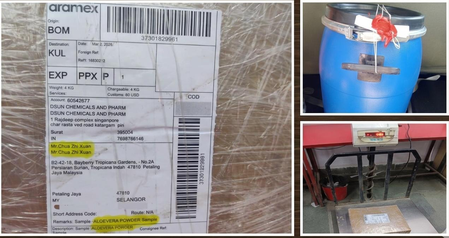 Officials said the consignment had been sent for air cargo shipment by accused Nikunj Gadhiya on March 2 through a firm named DSUN Chemicals and Pharma, which is not registered in his name.