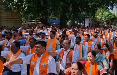 The event, presided over by BJP Vadodara Metropolitan President Jaiprakash Soni, saw scores of BJP leaders and officers singing the national song en masse and also featured a special program, "Group Singing and Speech," to celebrate the milestone.