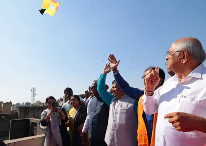 CM Bhupendra Patel inaugurated the kite festival celebrations by releasing balloons into the sky. The event saw participation of government officers including Gandhinagar Mayor and District Collector, the BJP's top office-bearers as well as international kite flyers and a large number of local residents.