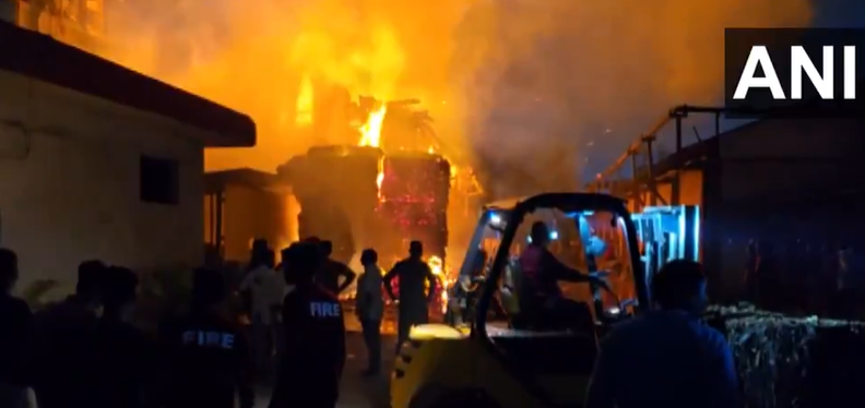 A major fire broke out at a paper mill in Valsad, Gujarat, on early Friday morning. According to officials, there were no reported casualties from the incident. The officials also stated that 80 pc of the fire has been brought under control. Fire officer BG Chawda said 'We received a call after 11.30 pm that there was a fire at Rama Paper Mill. Five of our vehicles reached here and we started the work of controlling it. 80% of the fire is under control. It is a paper mill, so the paper bundles and everything else are there.. There is no loss of life...'