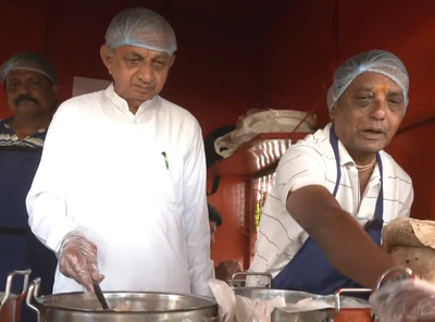 Instead of hosting a grand event, he visited the 'Shramik Annapurna Yojana' (Workers' Annapurna Scheme) centre in Gandhinagar and personally served meals to the hundreds of destitute people present there.