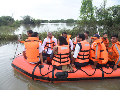 The villagers of Mandarawad had been trapped in the floods. Currently, the State Disaster Response Force (SDRF) personnel are relocating all residents to safety. Around 100 houses have been flooded, and people are struggling without clean drinking water.