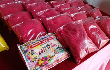 Herbal gulal and natural colours made from flowers are being sold at stalls in the mela.