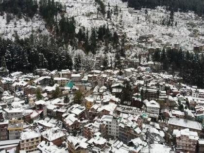 Mountains and houses were covered in a blanket of snow after Manali received snowfall.