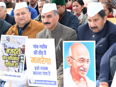 Shimla, Dec 29 Himachal Pradesh Chief Minister Sukhvinder Singh Sukhu along with his Cabinet members, on Monday, held a protest near the statue of Mahatma Gandhi at the Ridge here, opposing the Central government's decision to discontinue the Mahatma Gandhi National Rural Employment Guarantee Act (MNREGA) scheme.