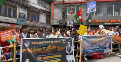 Gangtok was adorned with national flags along the route stretching from Biralu Dwar to MG Marg, creating a festive atmosphere as people eagerly awaited the Prime Minister's arrival.